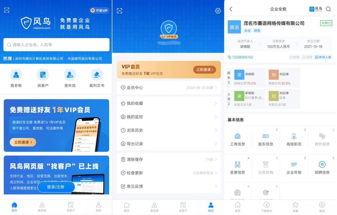 风鸟是一款免费、专业的企业查询监控平台,致力于为专业人士提供便捷的主体信用查询、风险预警监控、关联族谱查询等服务。