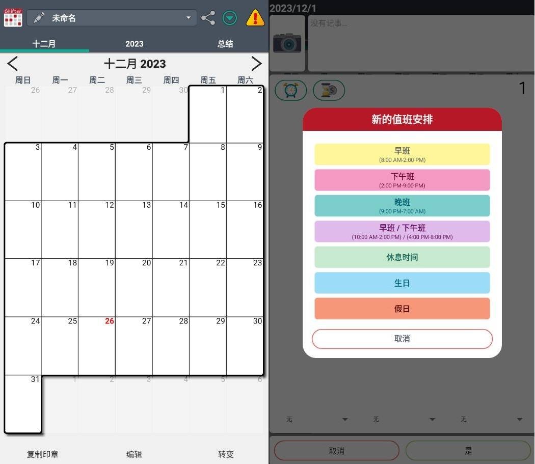 Work Shift Calendar Pro「轮班规划表」支持每天创建笔记并添加带有警报的提醒。让您永远不要忘记约会或重要提示。而且支持为您的桌面创建一个小部件并显示日历,甚至无需打开应用程序。
