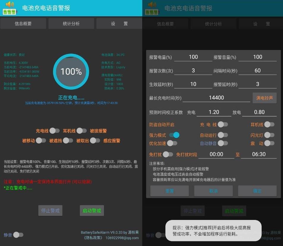 可以自定义报警电量*、提示音大小、更改提示音乐