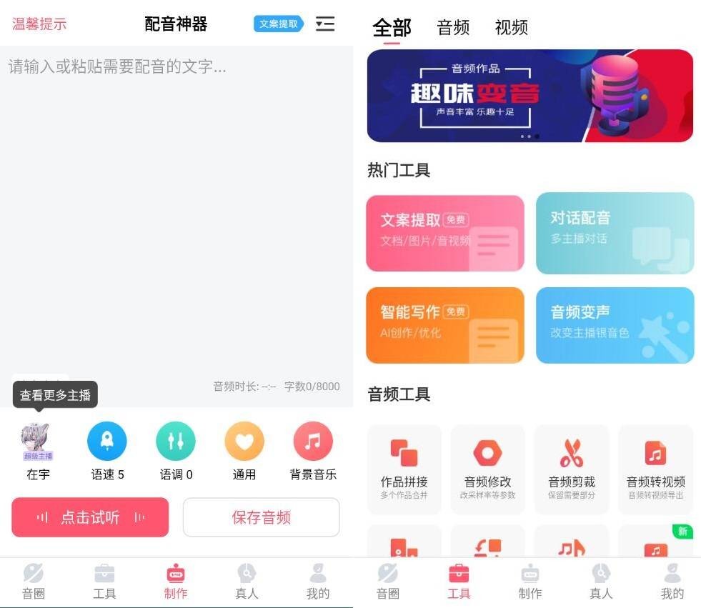 配音神器是一款文字转语音的配音软件,支持文字转语音,智能合成,可以自行编辑声音文本内容,导出mp3文件,有样音模板文案,有背景音库,有高频设备,可用来制作商场店铺促销声音文件,地摊叫卖清仓大甩卖录音,有声阅读,视频配音等。