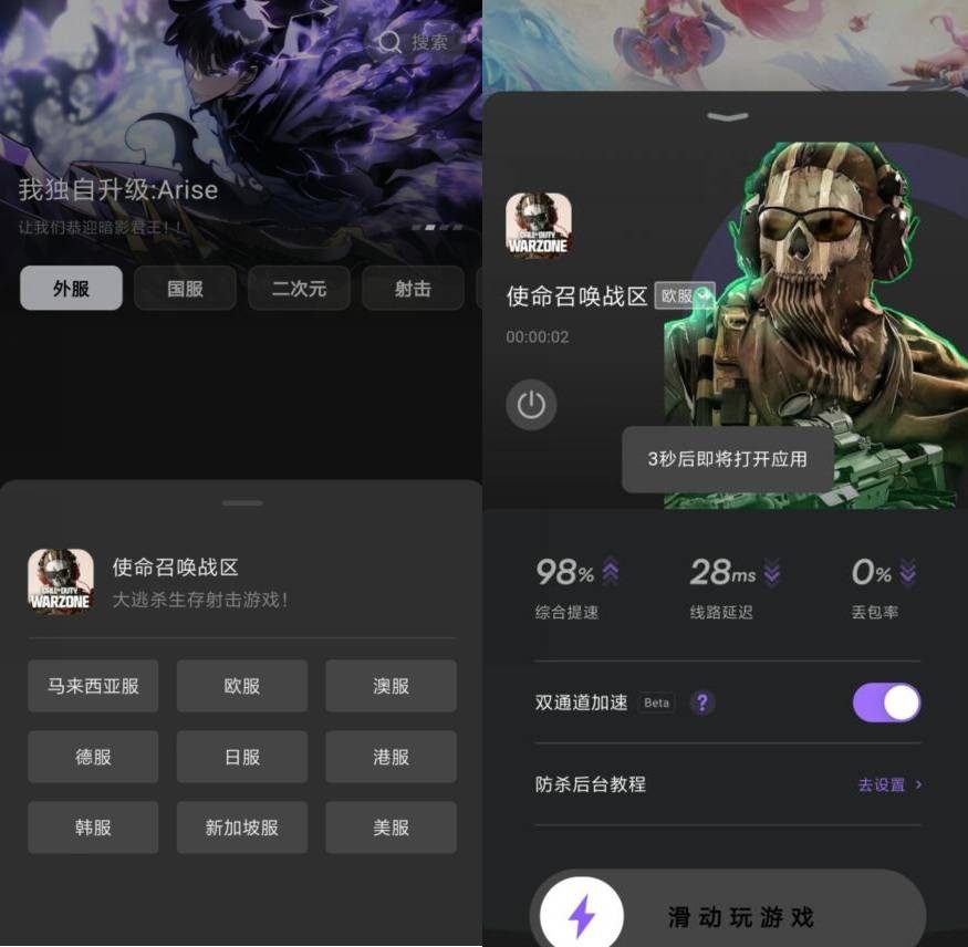 一款有效解决“高延迟”、“游戏卡顿”等网络问题的手游加速器,支持国内外海量热门游戏,一键免费加速。