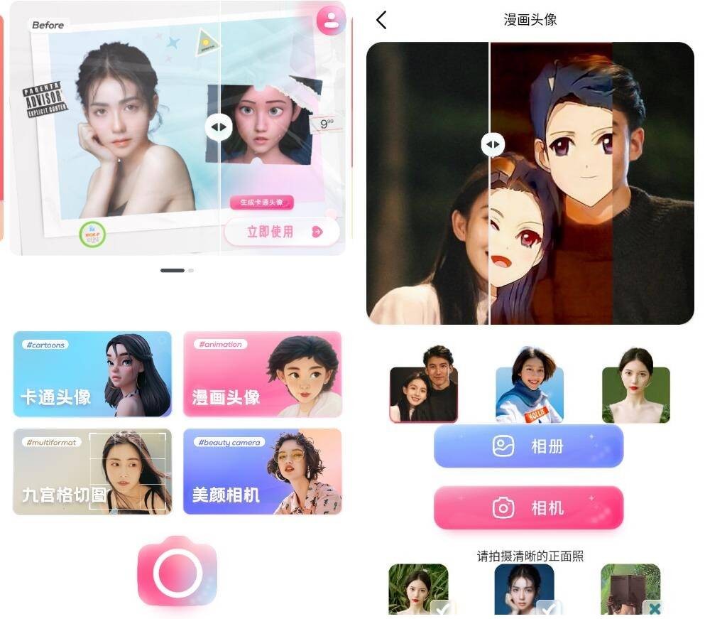 一款操作简单方便快捷的卡通美化软件。软件内提供多种漫画风,根据用户上传的照片通过人工智能驱动算法一键生成漫画头像,把自己卡通化,看到自己的手绘肖像。多种风格满足不同需求,一起来试试吧!