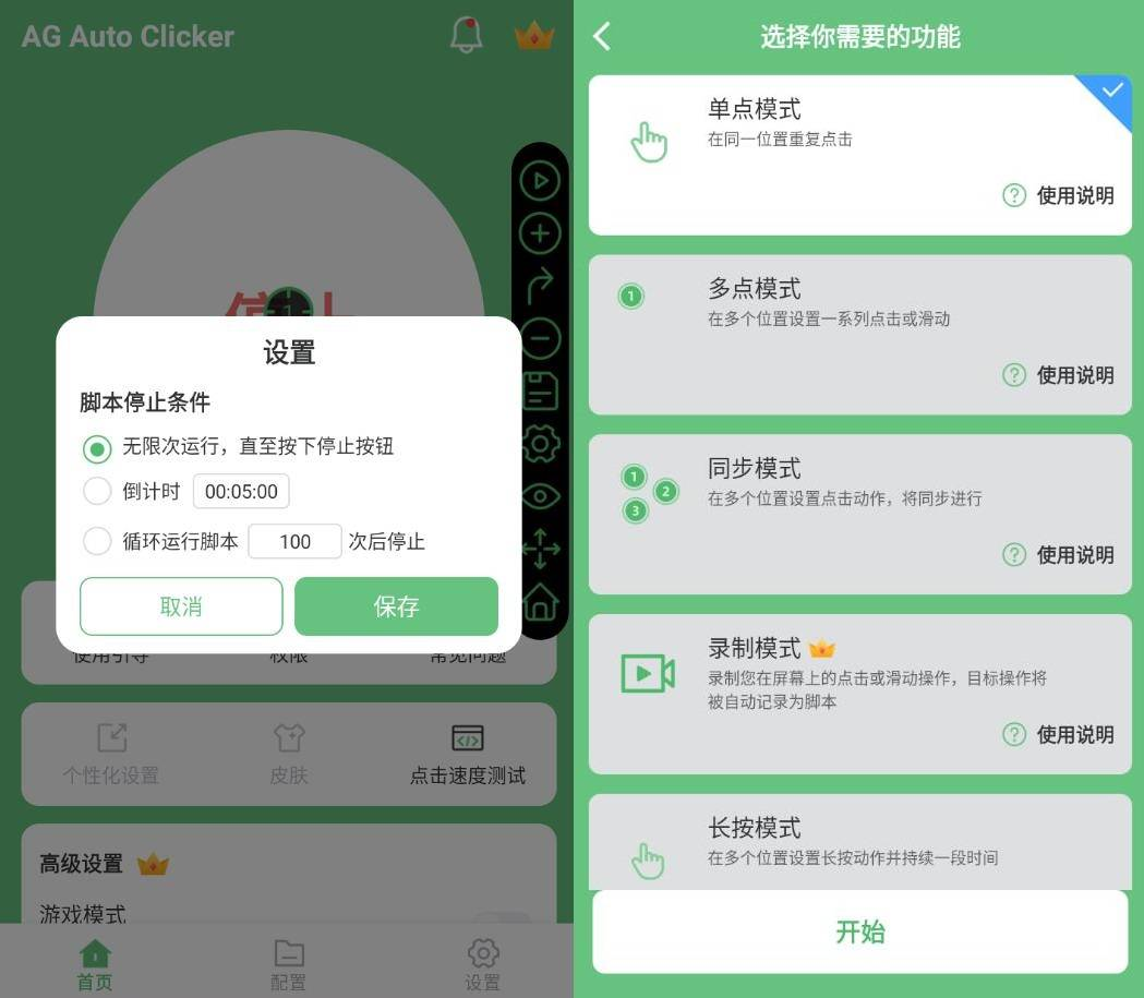 Auto clicker 不需要 root 权限。具有浮动控制面板以启动/停止自动开关。非常适合点击游戏等重复点击。