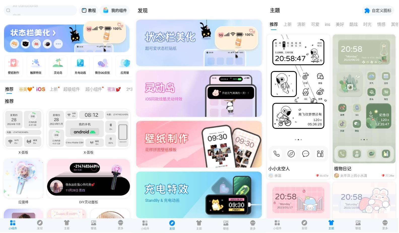 万能桌面小组件,500+小组件自由组合,不仅支持灵动岛种花养宠物,锁屏组件设置:锁屏天气、电量、快捷启动、X面板、个性文字图标、小动画、打工人时钟、步数等,还有灵动面板、照片、滚动相册,打工人时钟、todo待办清单、倒数日、时钟、日历、小目标、语录、花样便签、幸福路牌、风扇空调等创意桌面小组件,玩法多样!实用小组件搭配300+精美主题,高清壁纸和AI创意画,充电动画等功能,助你轻松搭配出好看又个性的手机桌面。
