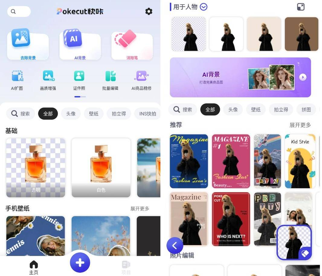 Pokecut快咔作图快咔设计室提供三百多个精美一键模板,更有丰富的背景、贴纸、字体素材,快速制作专业图片,轻松营销社媒平台!使用Pokecut快咔作图来制作电商商品图宣传图等简直是太方便了。你可以使用背景橡皮擦抠图和照片编辑器来优化您的产品照片并促进您的电商事业!同时应用提供 200多个设计精美的模板素材,可帮您轻松制作专业的商品图。设计将会变得格外简单!