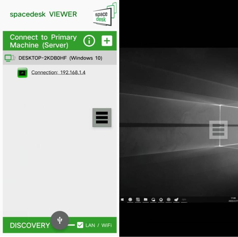 2、电脑上安装时如果要求开放端口什么的请允许开放,随后在安卓手机上运行spacedesk程序,并连接到你的windows主电脑(服务器)就OK了。