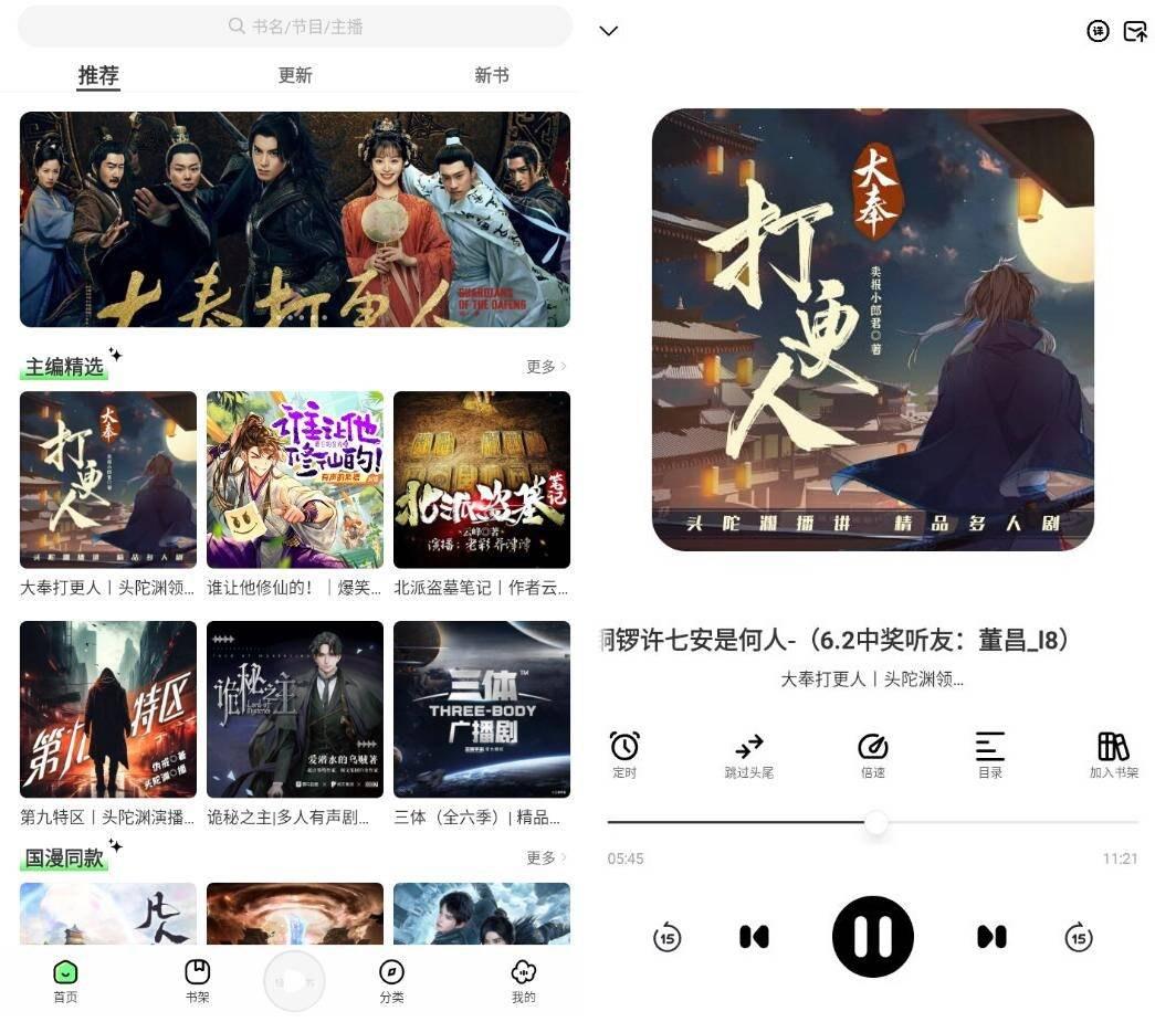 一款优秀的有声读物应用,提供了大量的有声读物资源,用户可以在这里享受到高品质的听书体验,该软件支持多种语言和高清音质,让用户感受到真实的听书体验,无广告干扰,让用户专心听书欣赏,超级资源全在其中,全面覆盖小说、相声、悬疑、历史、音乐等资源,及时更新,简洁清晰的ui界面和易于操作的设计,让用户可以轻松使用,随时随地享受听书的乐趣,感兴趣的用户可以下载试一试。