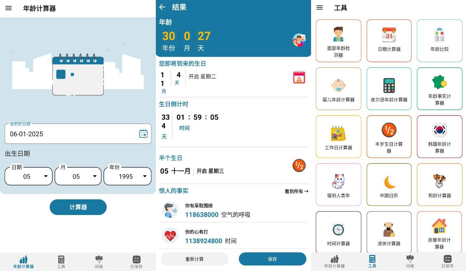 您是否想做一个生日倒计时来祝您的朋友和家人生日快乐?Eclixtech 为您提供年龄计算器出生日期应用程序,带有周年纪念追踪器生日提醒和生日祝福。使用这个方便的年龄计算器出生日期、时间计算器和退休计算器应用程序查找您的年龄。您可以借助此按时间顺序排列的年龄计算器和婴儿年龄追踪器应用程序计算年、月、日、周、小时和分钟的准确年龄。