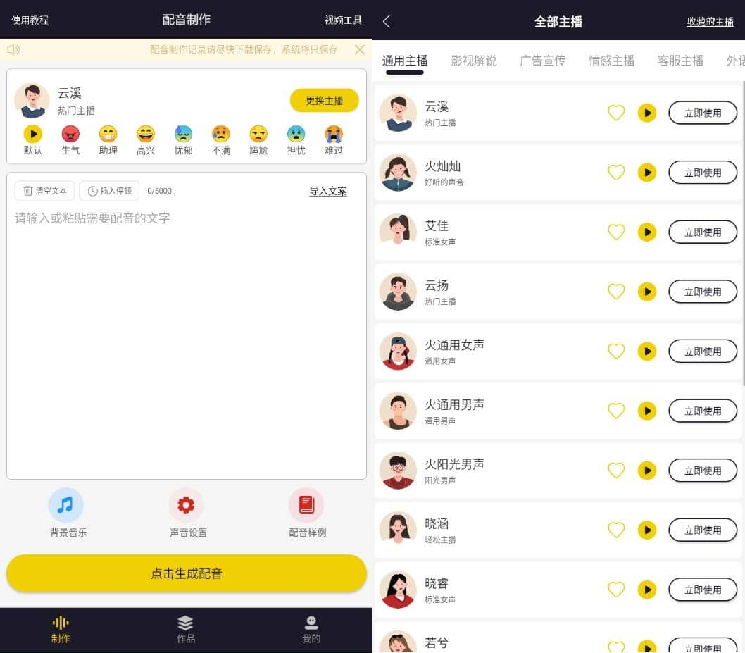 该软件是一款功能强大的配音工具,支持用户自助配音,提供多种主播音色选择。