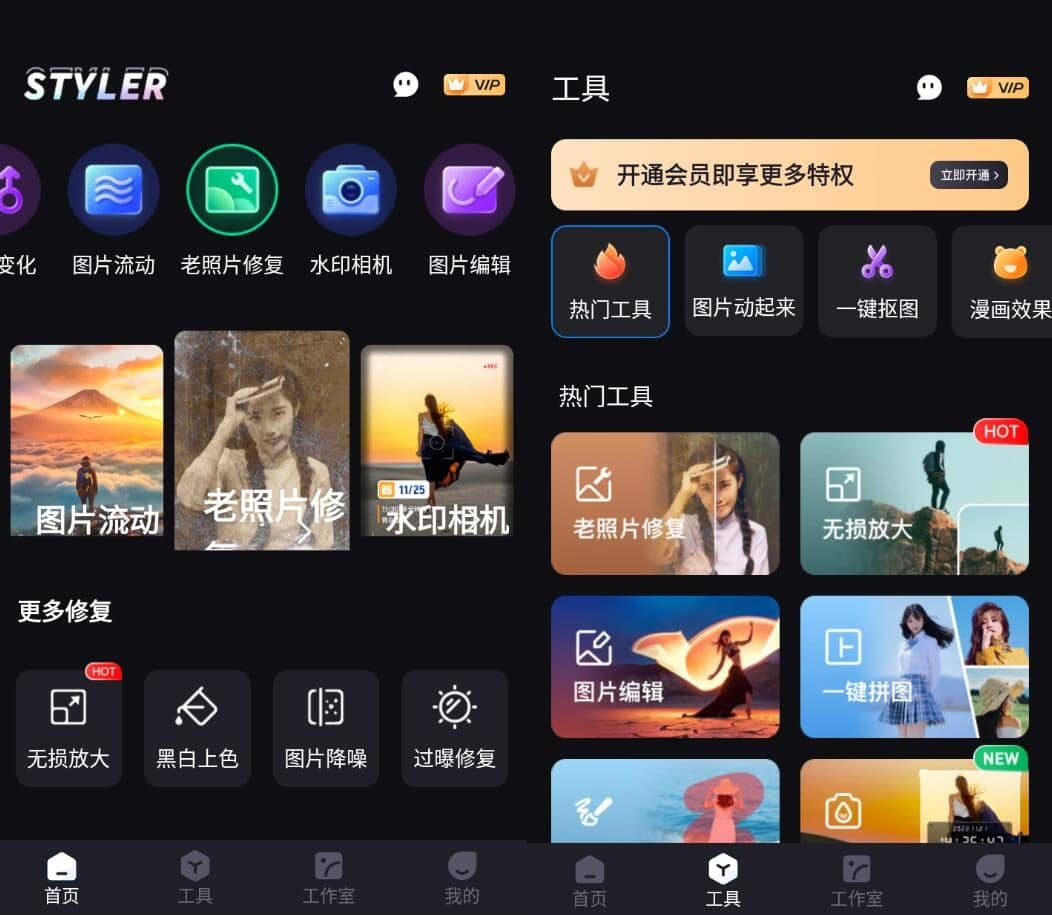 通过智能的ai修复受损照片,模糊的人像、曝光过度的风景等老旧照片,清晰你对美好事物的回忆。