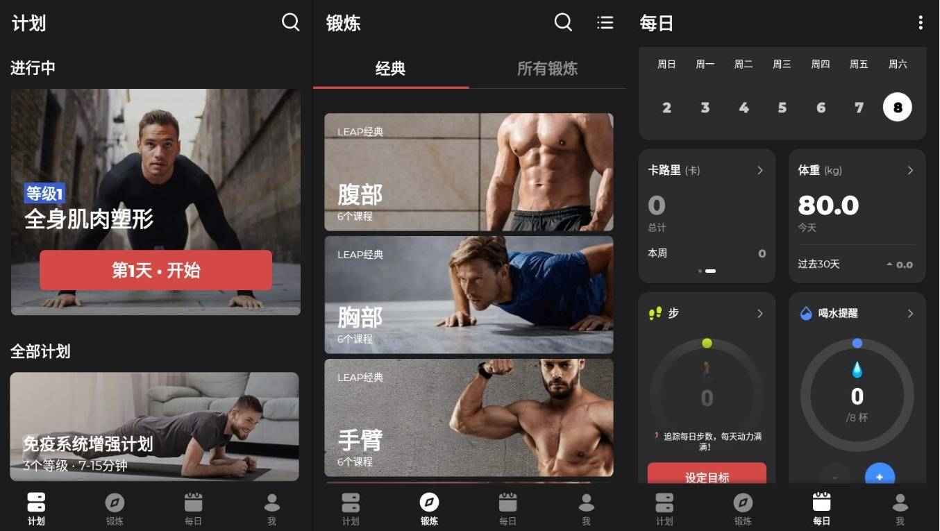 无论你是健身小白还是健身专家,都能根据自身的健身水平获得适合自己的训练计划。你也可以选择不同计划等级,提高难度,挑战自己。可弹性调整的自重运动专为生活忙碌的你打造。从2分钟的例行训练到30分钟的完整训练,无论身处何处都能建立健康好习惯。