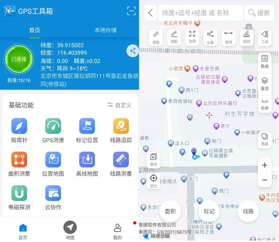 集成定位导航、地理测量及户外辅助工具。其核心功能包括实时路线规划、面积测距、轨迹记录、卫星地图切换及精准天气预报,适用于徒步、自驾等场景。