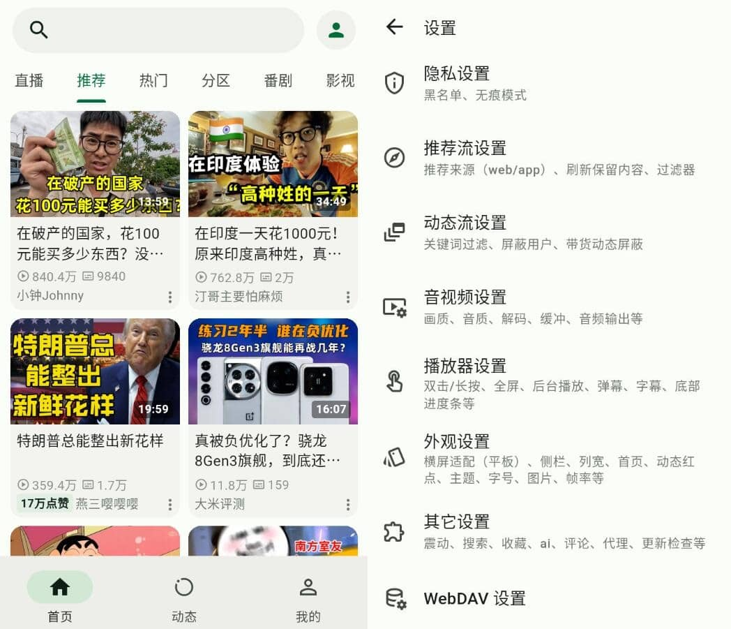 PiliNara是一款基于Flutter框架开发的哔哩哔哩第三方客户端,旨在为用户提供更加流畅、简洁且功能丰富的B站视频观看体验。它不仅保留了B站原有的丰富内容,如番剧、直播、短视频等,还通过优化界面设计和增强用户体验,让用户能够更轻松地浏览和观看自己喜欢的视频内容。